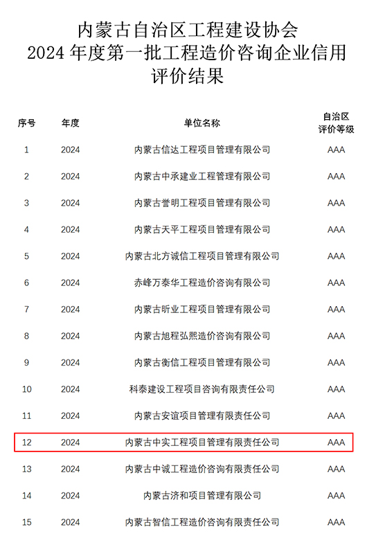 2024-07-3016813 次近期,我公司参加内蒙古自治区工程建设协会组织的“2024年度第一批工程造价咨询企业信用”申报,获得“信用AAA级证书”。我公司成立多年以来,遵循中国工程造价管理协会对造价咨询企…